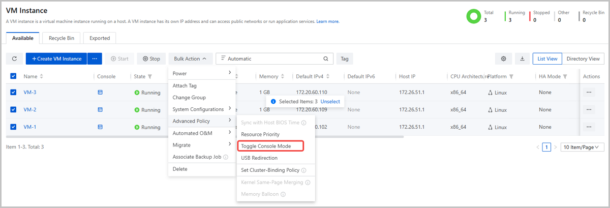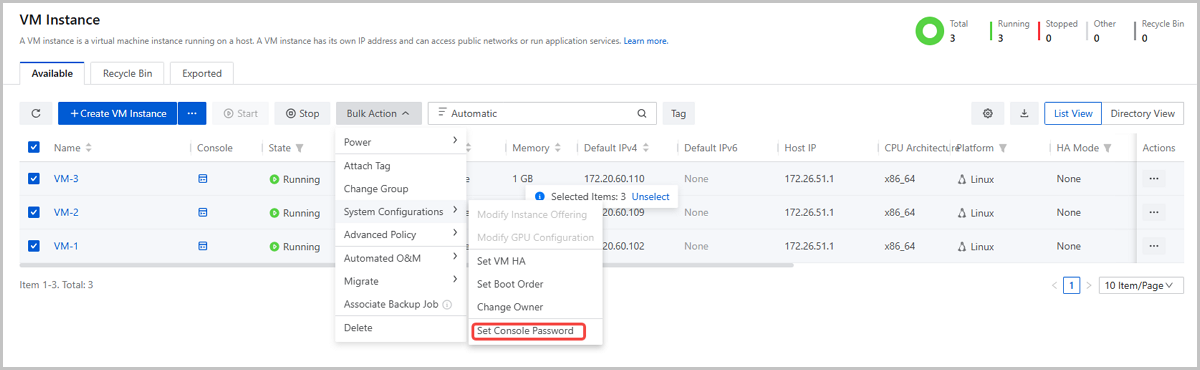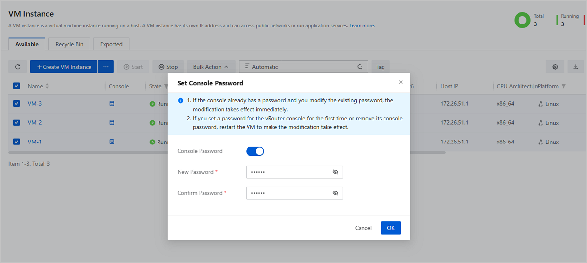 Starting from ZStack Cloud 5.5.0, you can batch configure VM console passwords and switch VM console modes, significantly improving efficiency in large-scale operations.