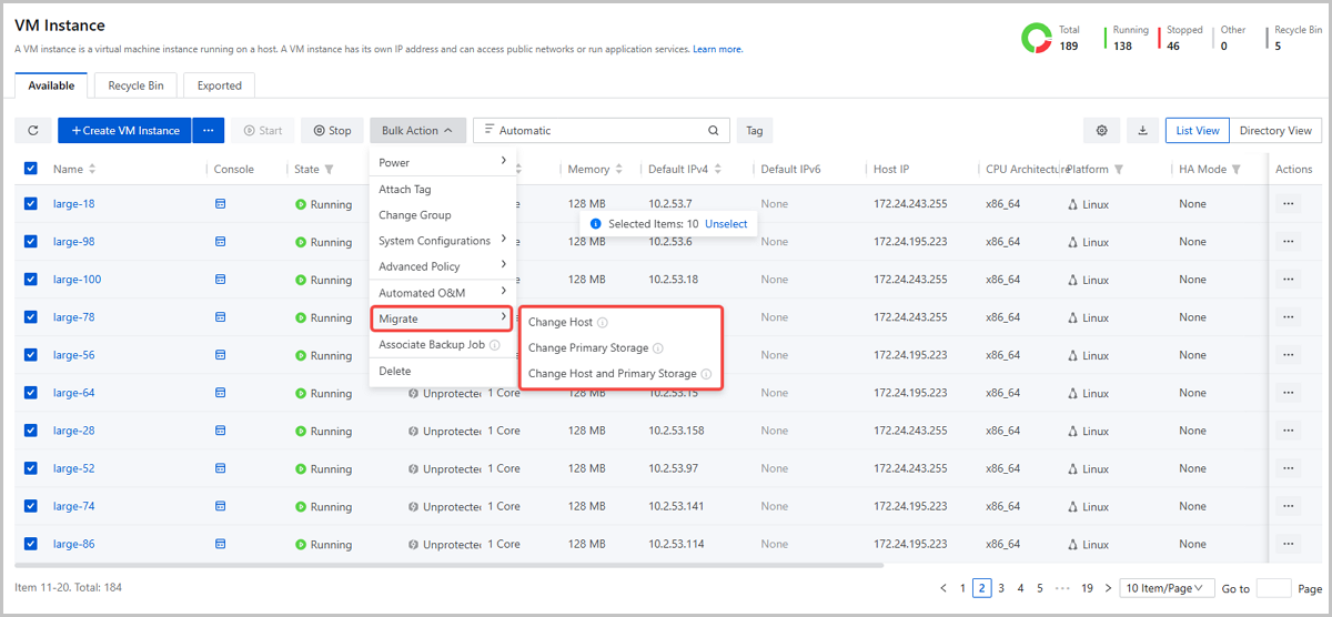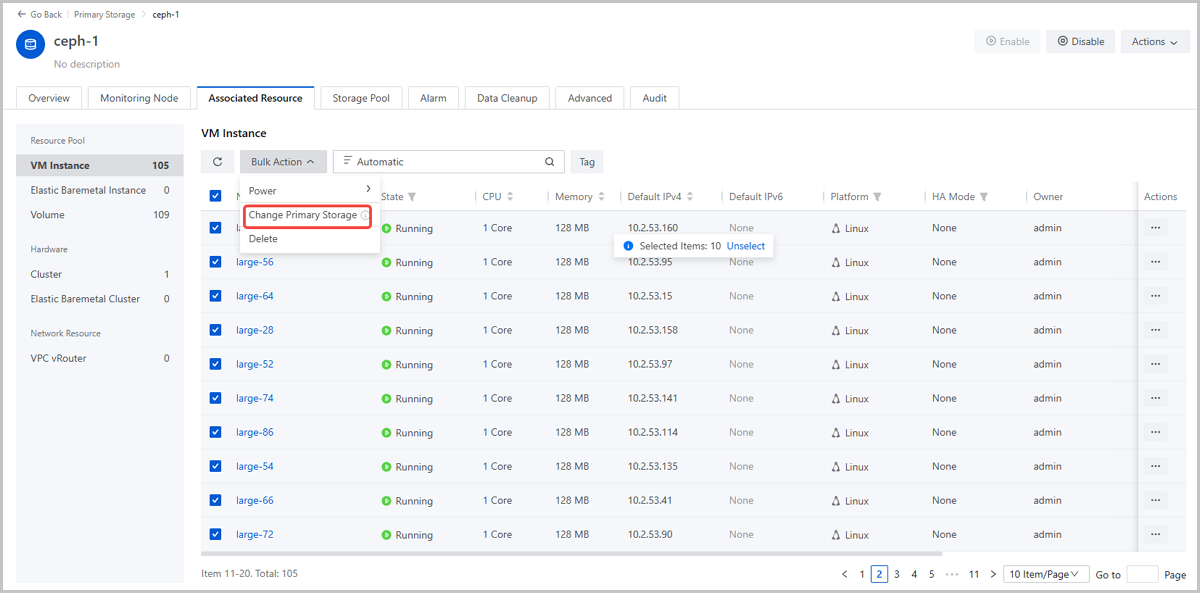 Additionally, migration entry points are now available on the Associated Resource tab in the host or primary storage details page. This allows you to initiate batch migration directly based on the associated hosts or primary storage, providing richer operational perspectives and a more convenient user experience.