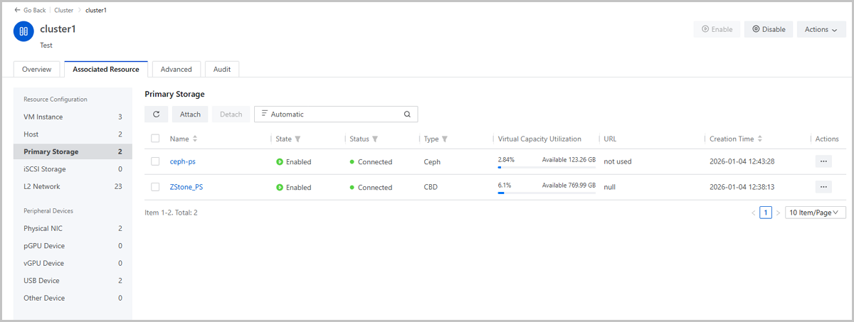 ZStack Cloud 5.5.0 enhances CBD primary storage with the following features.