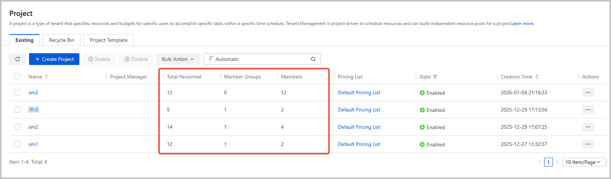 ZStack Cloud 5.5.0 optimizes the tenant management project user count statistics. It now separately displays the number of members, the number of member groups, and the total number of users within the project. The total project user count is calculated as: Total Users = Number of Members + Sum of Individuals in Each Member Group.