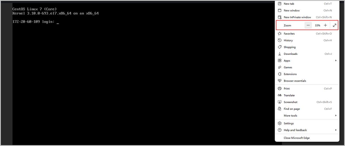 Starting from ZStack Cloud 5.0.0, VM console pages can adapts to the browser resolution automatically, ensuring a clear and complete console screen regardless of the browser resolution value.