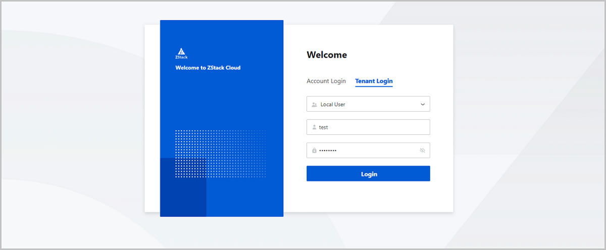 In addition, the Project Login entry on the login page is renamed as Tenant Login, all users in Tenant Management, including the platform users and project members, need to log in to ZStack Cloud from this entry.