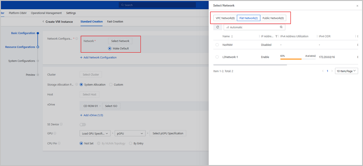 ZStack Cloud 4.7.11 simplifies the interaction steps of selecting a network configuration when creating VM instances, which reduces operational fatigue and improves user experience.