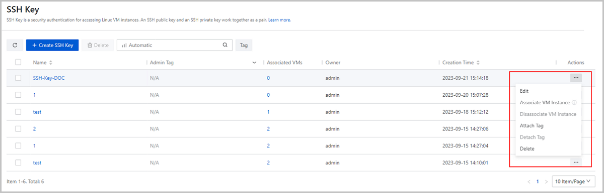 These SSH keys enjoy lifecycle management and O&M actions provided byZStack Cloud, including creation, edition, deletion, attachment/detachment to/from VM instances, and attachment/detachment to/from tags.