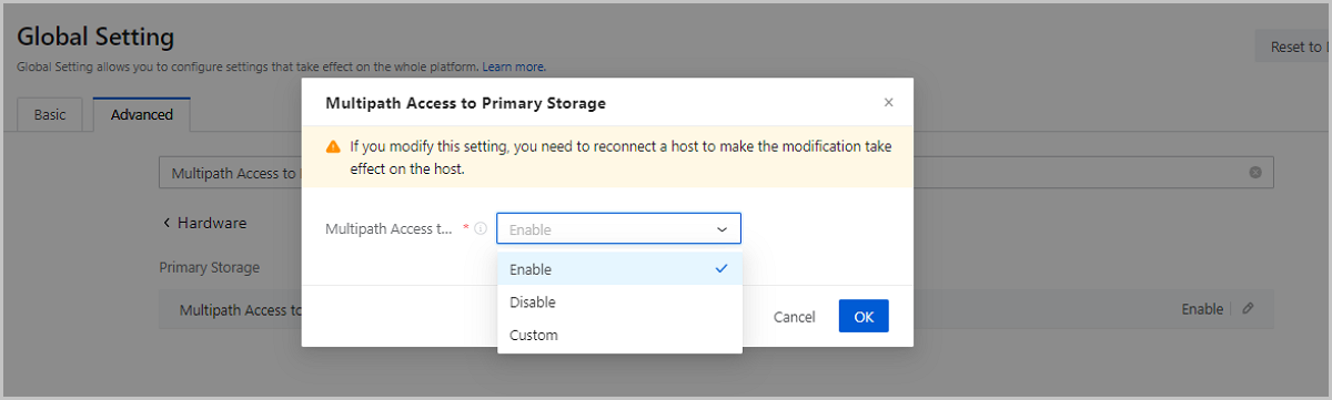 Starting from ZStack Cloud 4.6.31, the Cloud supports global control on the host's multipath access to primary storage. This function can improve your business I/O flexibility and I/O performance.
