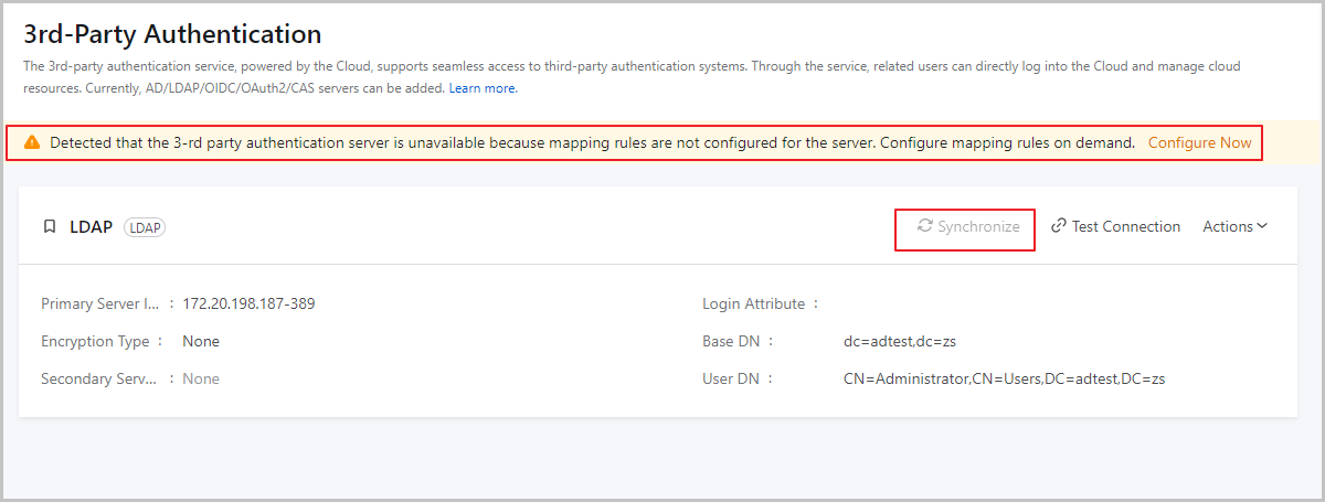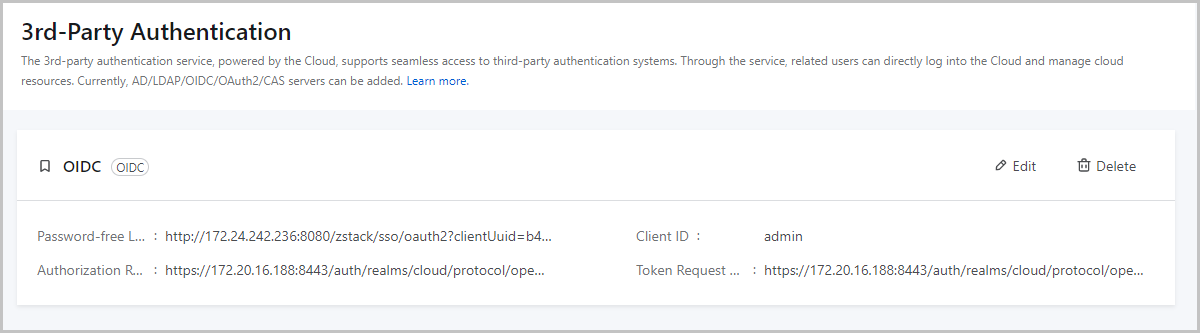 Starting from ZStack Cloud 4.6.0, Enterprise Management has reorganized and optimized the process of adding different types of 3rd-party authentication servers to improve user experience.