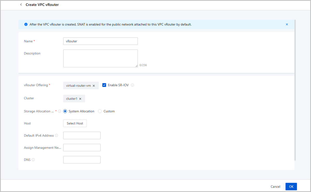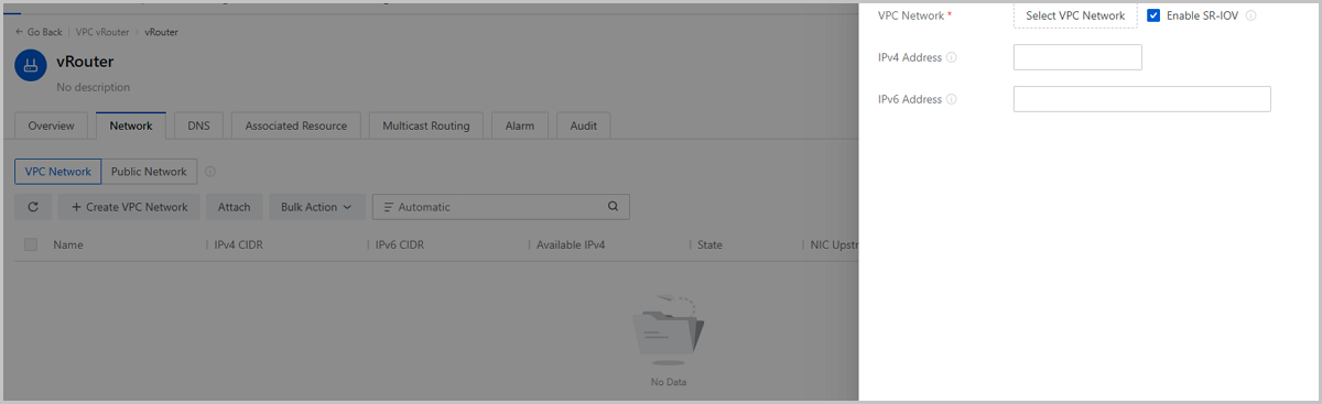 Starting from ZStack Cloud 5.3.0, VPC vRouters and dedicated performance LB instance using the openEuler 22.03 can enable SR-IOV during network attachment. This feature allows the passthrough of VF NICs to improve network bandwidth, PPS, and reduce latency. VPC vRouters and LB instance can be hot-migrated with VF NICs, ensuring business continuity.