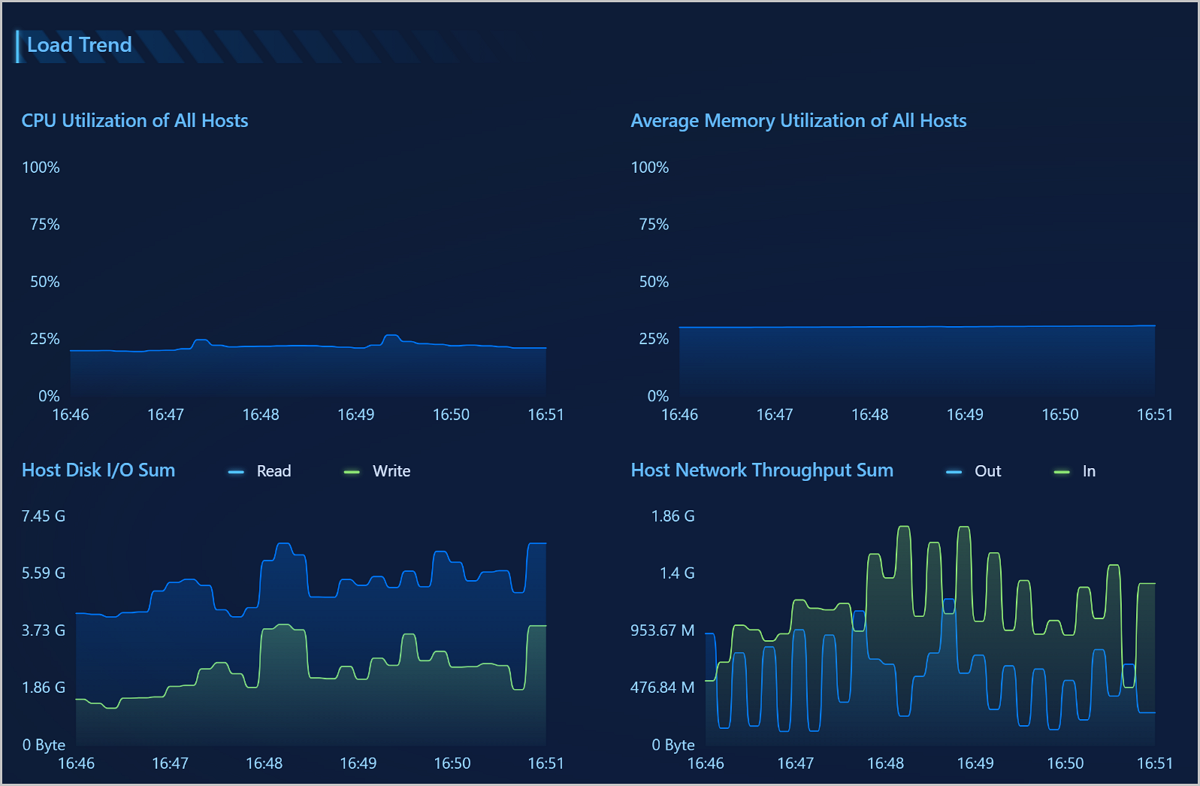 The load trend supports dynamic switching, which means the statistics graphs of all hosts are switched every 15 seconds, and you can also click and switch the graphs manually.