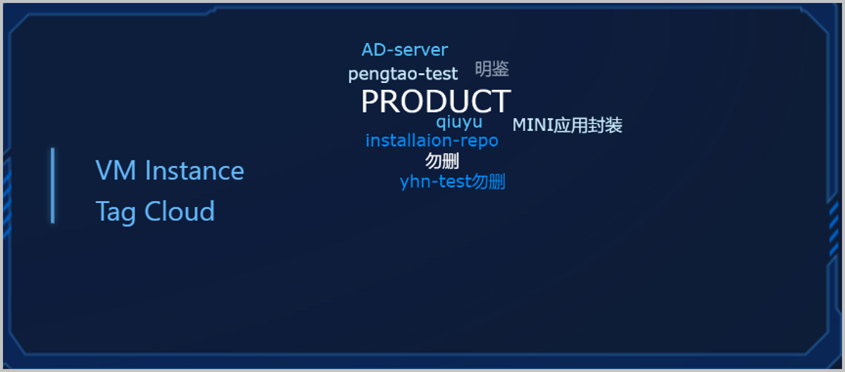 The monitor collects statistics on the KVM VM instance tags as well as the tags bound to KVM VM instances in the selected hypervisor and zone, and provides the tags cloud in different colors and sizes. When more VM instances are bound to a tag, this tag will be more eye-catching with larger size and brighter color, which can intuitively inform you which VM tags are more popular.