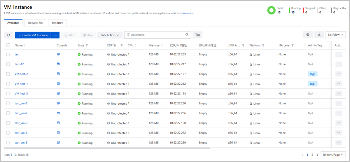 By default, VM instances are displayed in a list view. You can flexibly switch the VM instance view as needed.