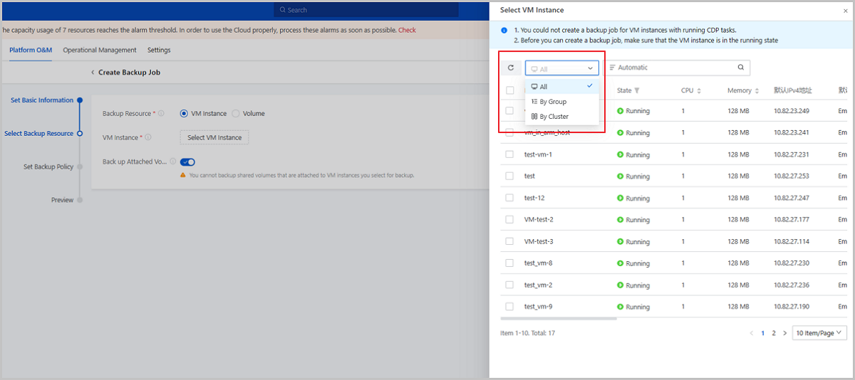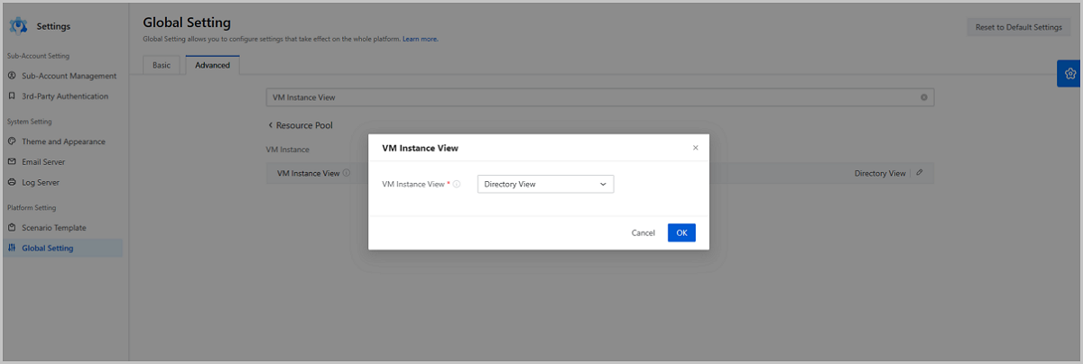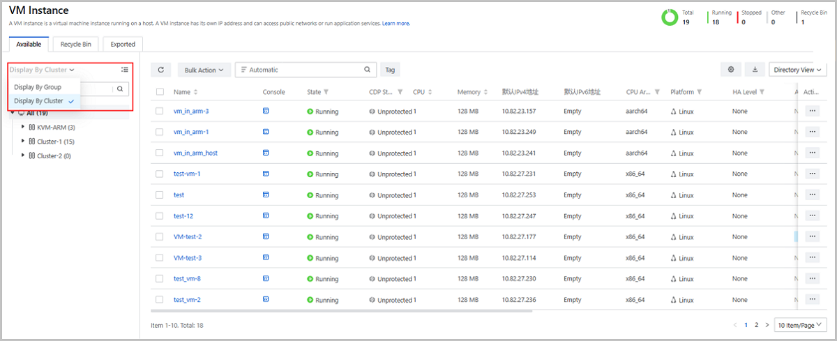 ZStack Cloud provides two method to display VM instance: List View and Directory View. A directory view can display VM instances by cluster or by group. You can specify how VM instances are displayed as needed to achieve a higher resource management efficiency.
