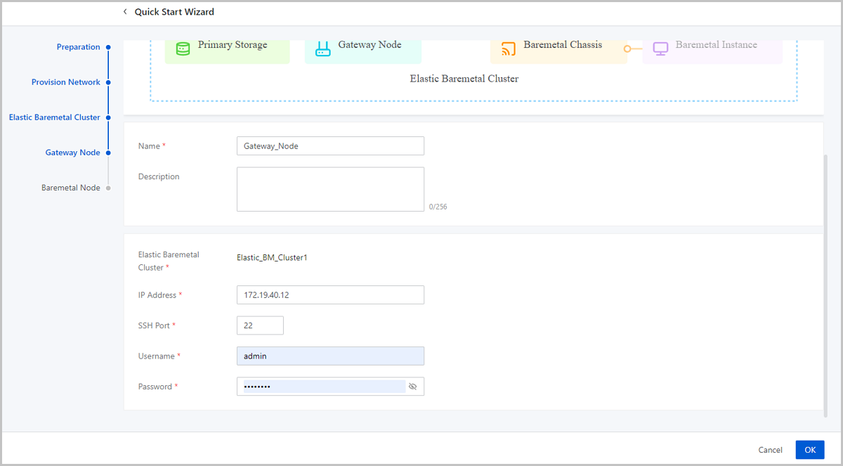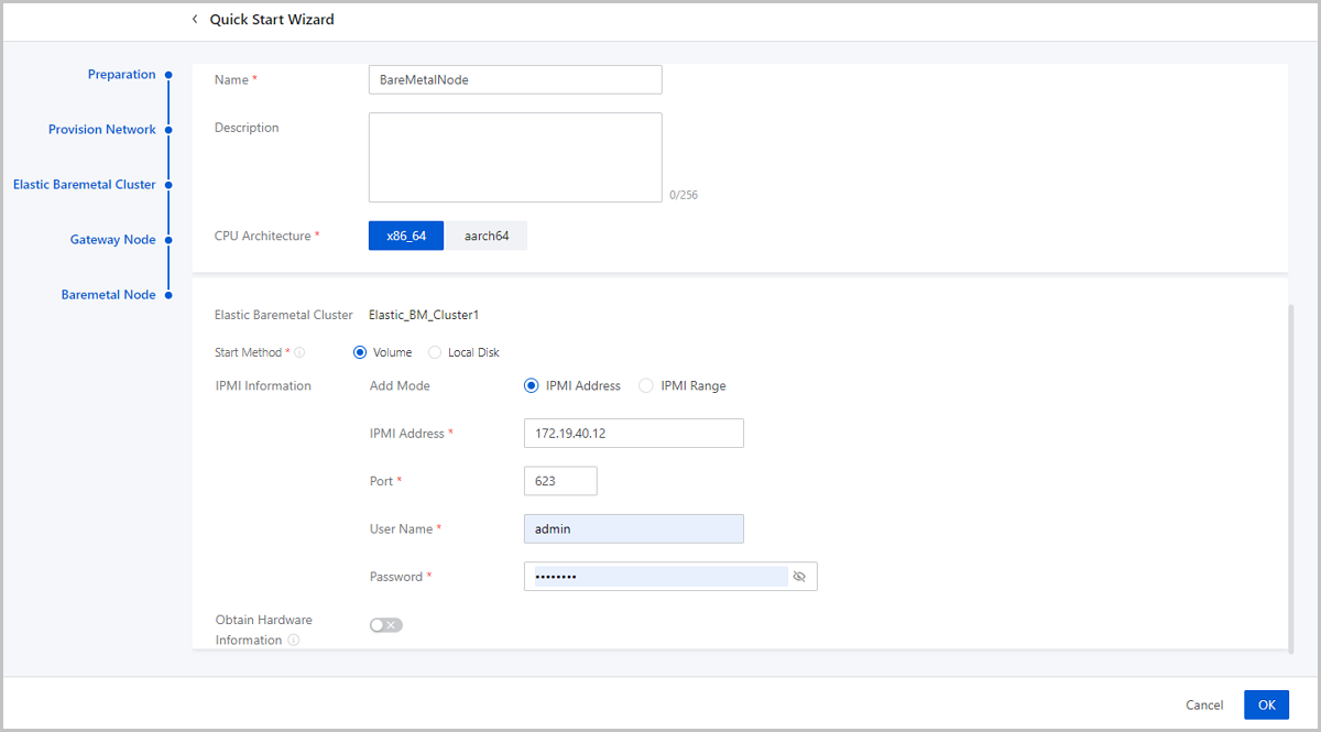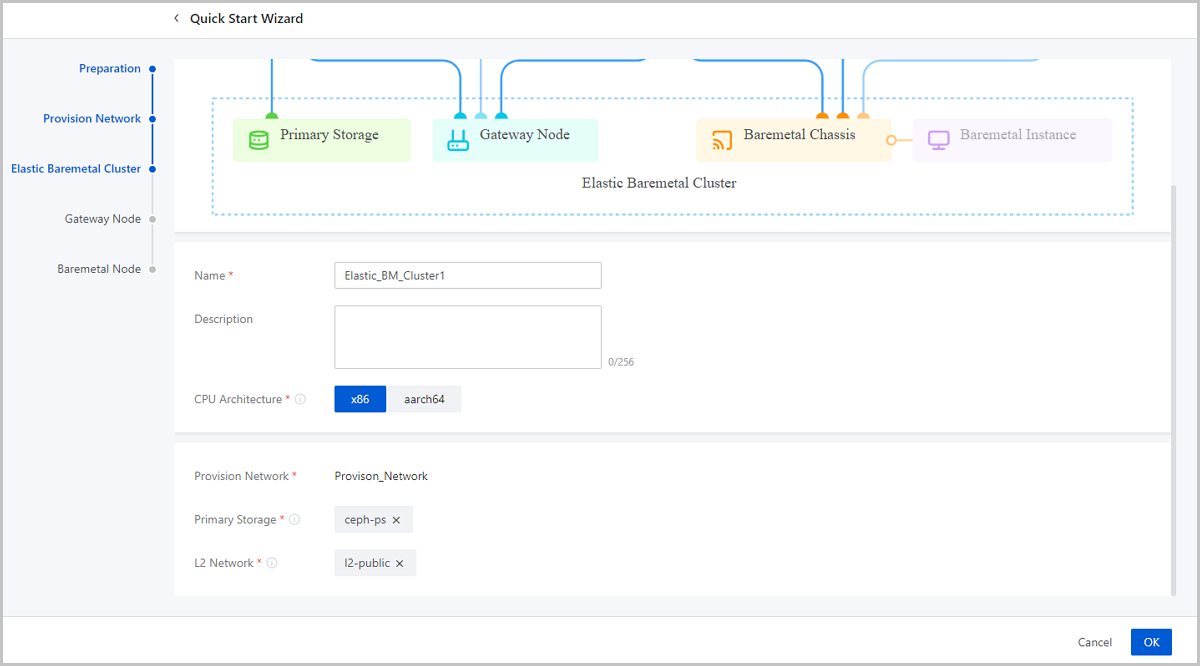 Note: Make sure that the CPU architecture of the elastic baremetal cluster is consistent with that of baremetal nodes and gateway node.