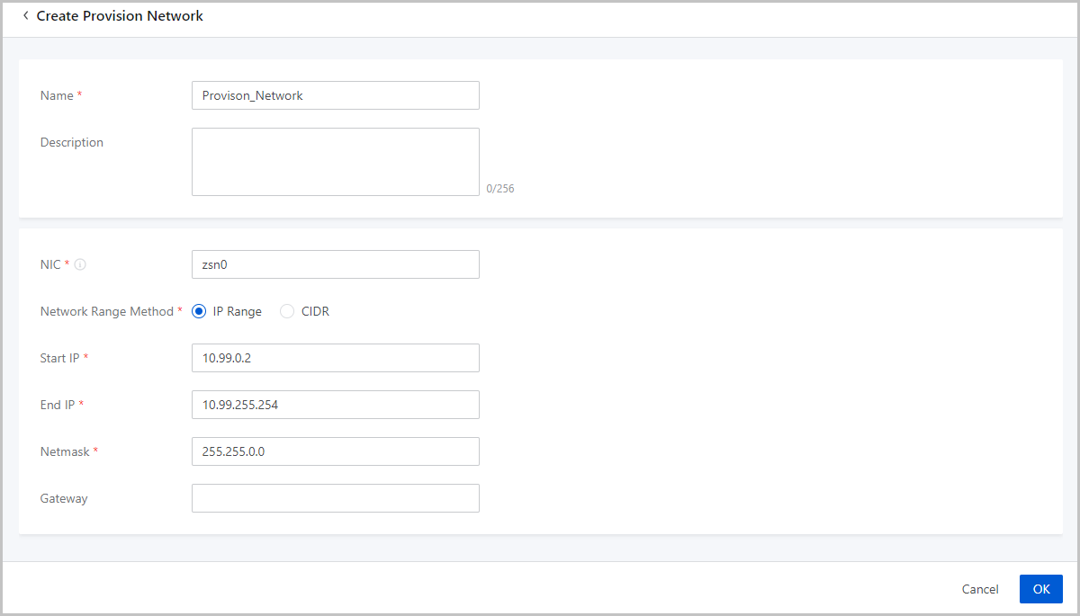 Make sure that you have deployed IPv4 physical networks, including management networks, storage networks, provision networks, business networks, IPMI networks. We recommend that you use at least 10 Gigabit NICs for your provision network.