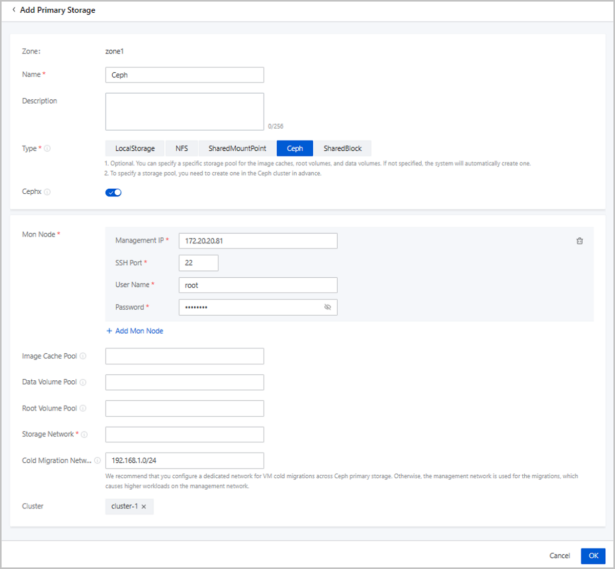 Note: Make sure that the license of the ZStack Ceph Enterprise storage is valid.