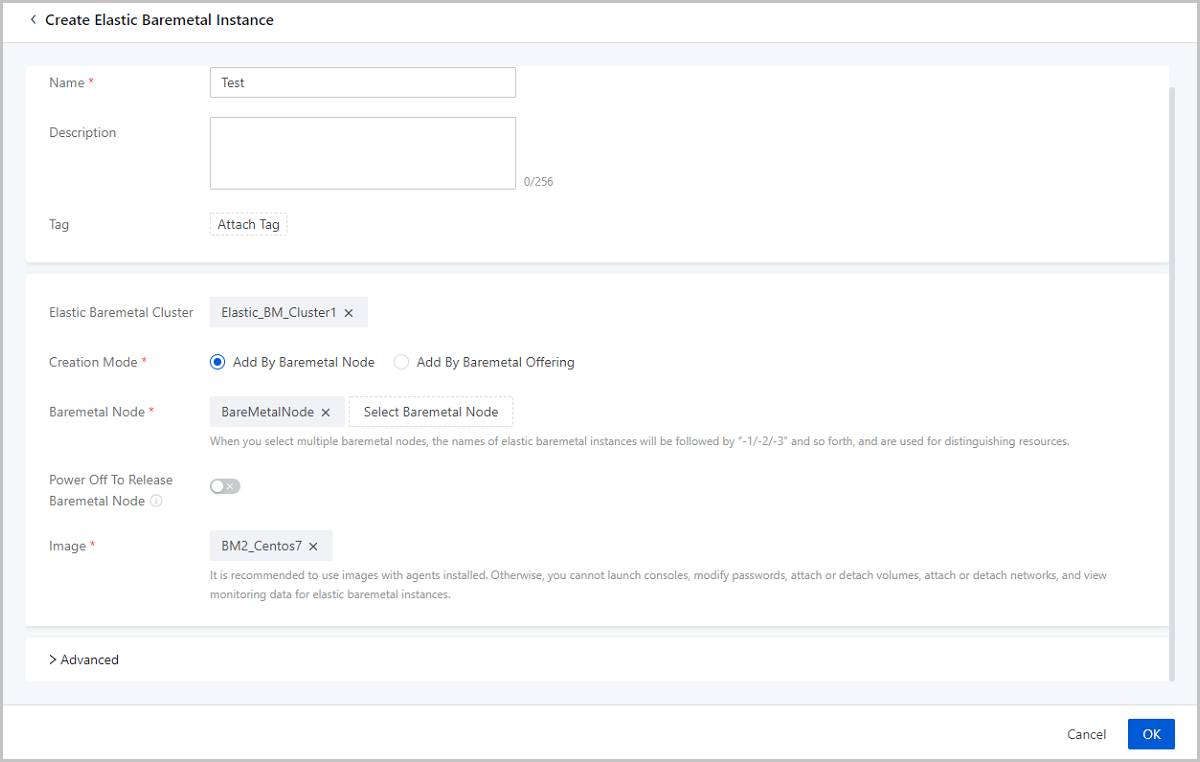 An elastic baremetal instance no longer depends on IPMI/BMC network (optional), and the NIC can be used as a baremetal node as long as it supports PXE boot. The realization of the elastic baremetal instance does not associate any CPU or virtualization technology. As long as there is a system image that can be started, and no matter if it is an ISO, qcow2, or raw image, it can be used as a virtual hard disk by an elastic baremetal instance. That is, the elastic baremetal can be directly used on domestic servers.