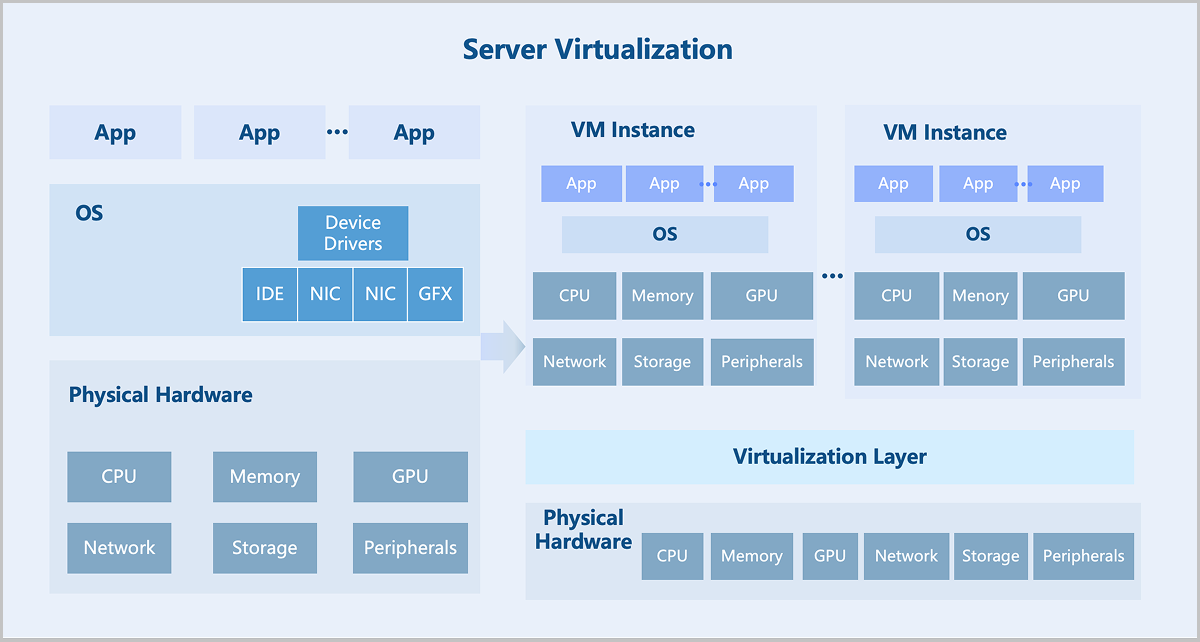 Compute virtualization abstracts physical server resources into logical resources through virtualization technology, enabling a single physical server to function as multiple isolated virtual machines. It pools hardware resources such as CPU, memory, disk, and I/O devices into a virtual resource pool for unified dynamic management. Consequently, it improves resource utilization, reduces system management costs, and increases IT agility to adapt to business changes.