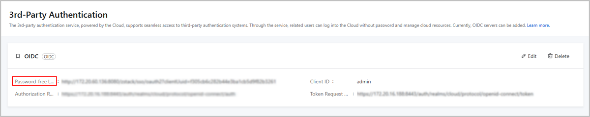 To configure ZStack Cloud as a client of the authentication system, you need to log in to the OIDC authentication system using the administrator account and generate a unique Client ID and a Client Secret for the Cloud.