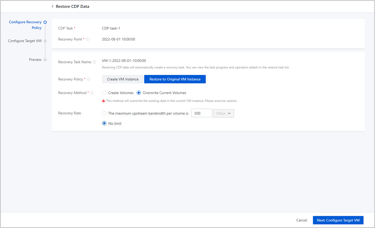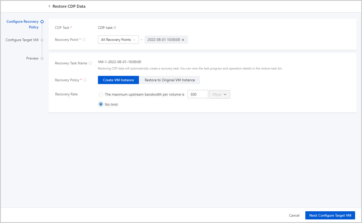 Note: Recovery tasks created here are named in the format of VM Name-Recovery Point Time, for example, VM-1-2022-08-01-10:00:00.