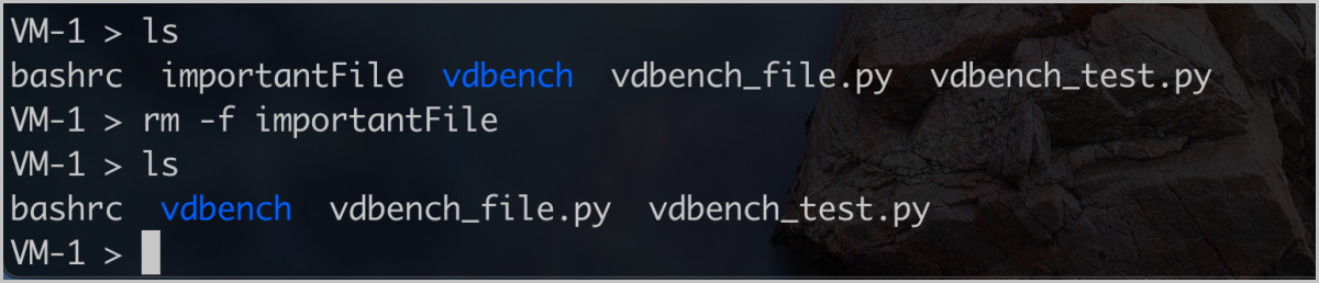 Launch the VM console and run the ls command to view the file in the directory. You can find that the importantFile already exists in the directory.