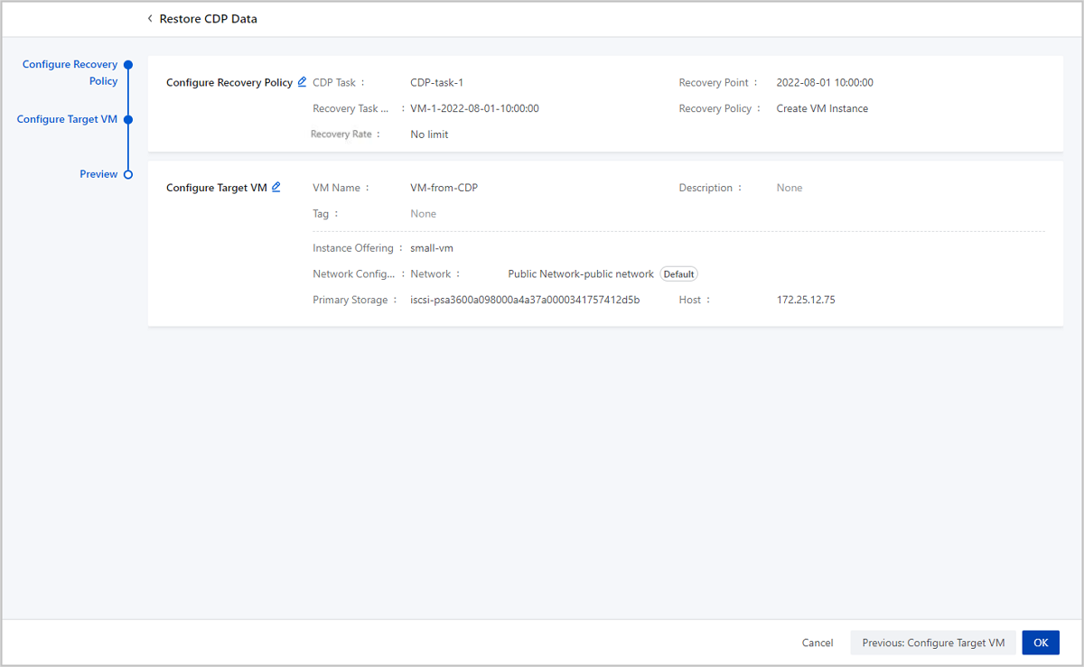 So far, we have introduced the CDP scenario practice of restoring data by creating a new VM instance.