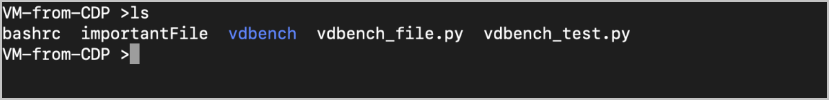 Launch the console of the newly created VM instance (VM-from-CDP). Then, run the ls command to view the file in the directory. You can find that the importantFile already exists in the directory.
