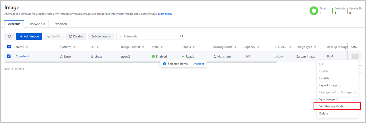 | Image Operations | Provides image-related features, which is used to add the VPC vRouter image and create VPC vRouters. |