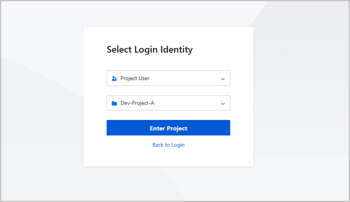 The users who have joined projects and have roles attached can log in to the Cloud to use resources on the platform, and also perform various actions. By using Chrome or Firefox, the project members are allowed go to the Project Login page via http://management_node_ip:5000/#/project. To log in to the Cloud, the project members must enter the corresponding user name and password.