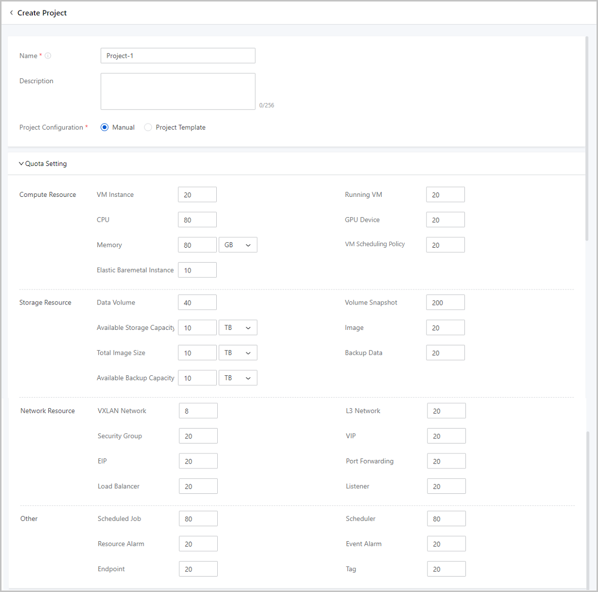 Note: In this scenario, refer to Table 4, and create DevProjectA-SH (ZONE-SH), SalesProjectA-BJ (ZONE-BJ) and specify relevant project admin. The content other than the Project Admin can be left blank currently.