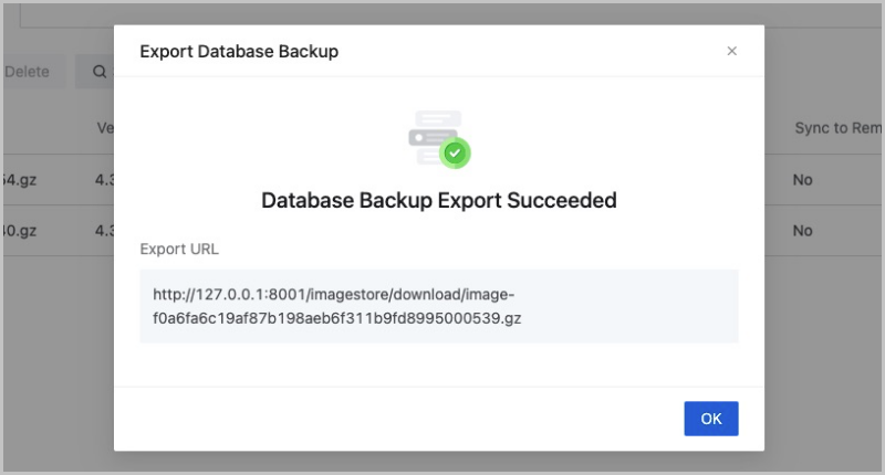 Note: The backup data of the database is stored in the storage of the URL.