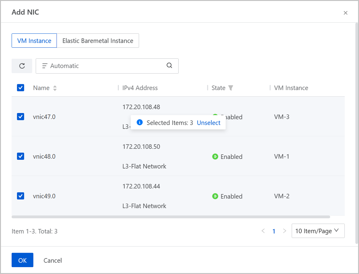 On the main menu of ZStack Cloud, choose . On the VM Instance page, click Create VM Instance. Then, the Create VM Instance page is displayed. On the displayed page, create two VM instances by using the IPv4 flat network, for example, VM-Dual Stack-1 and VM-Dual Stack-2.