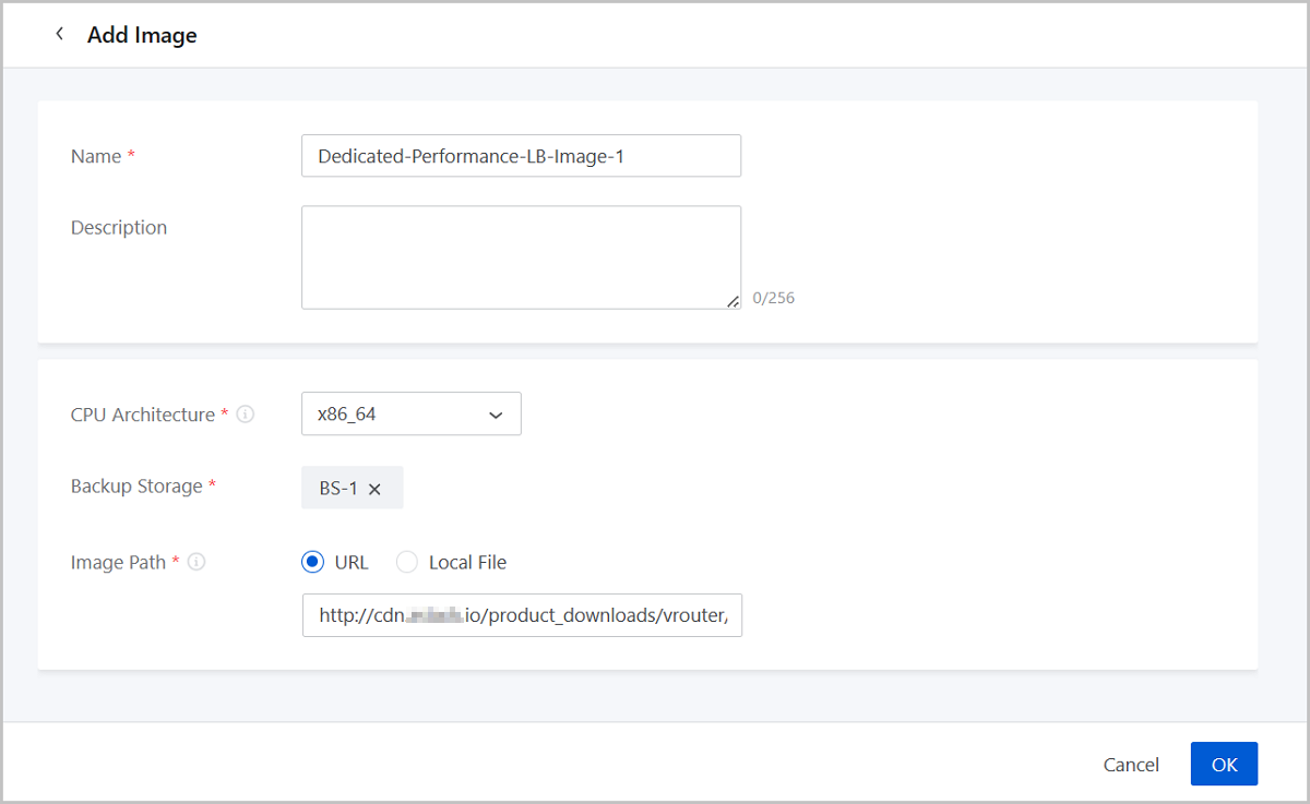 On the main menu of ZStack Cloud, choose . On the Image tab, click Add Image. The Add Image page appears.
