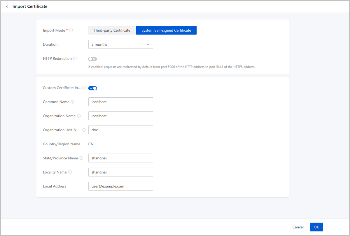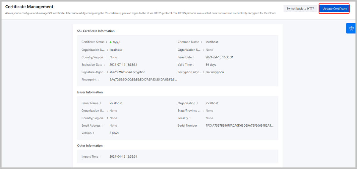 Note: After configuring the certificate, the system will establish a new session, and you will need to log in to the UI interface again.In this section, you will learn how to import a system self-signed certificate via the UI interface.