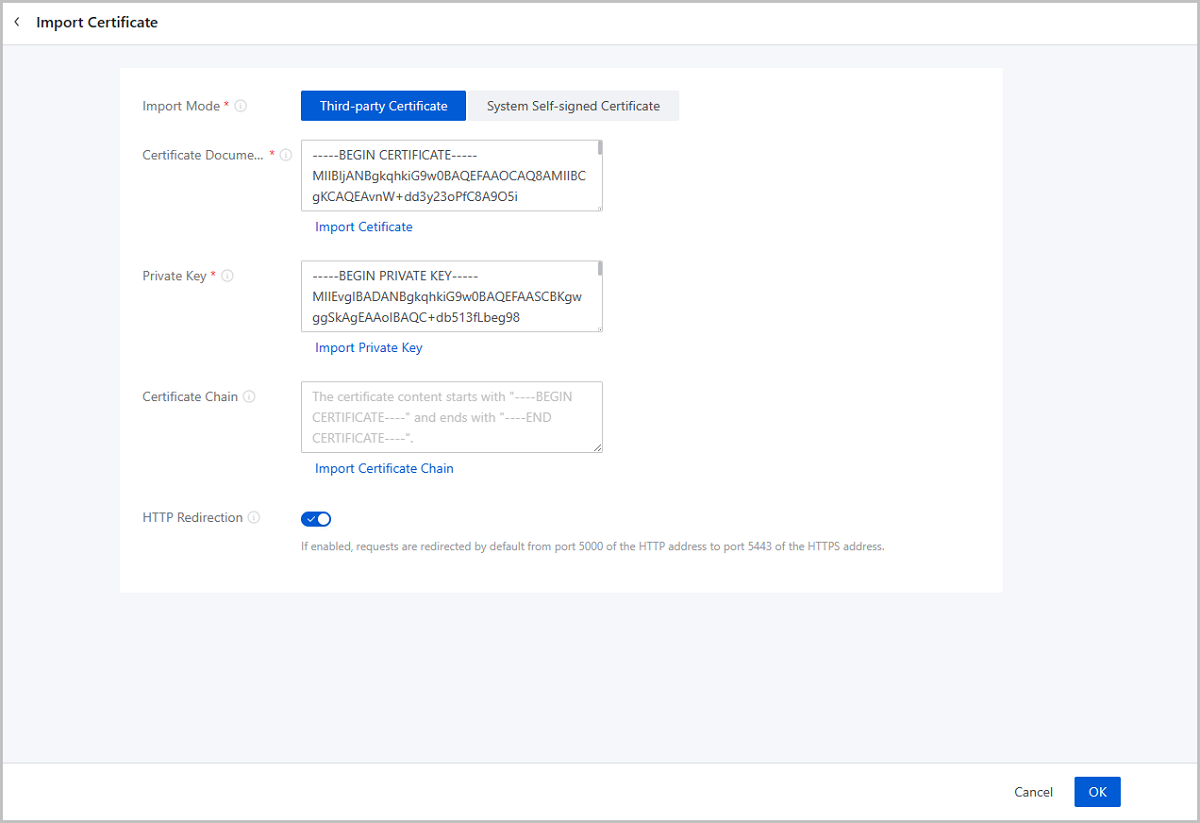 Note: If your certificate does not meet the format requirements, please convert the format on your own.