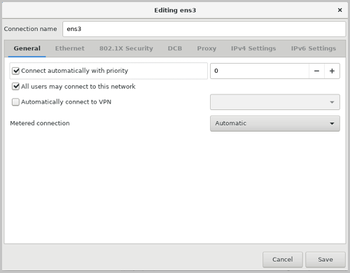 On the Editing ens3 page, choose . Then the auto-activation is enabled.