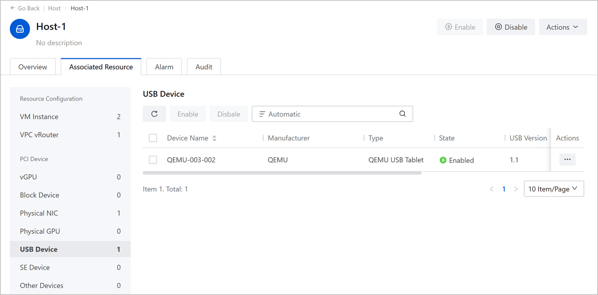 Once you have successfully added a host, ZStack Cloud can automatically recognize USB devices on the host.