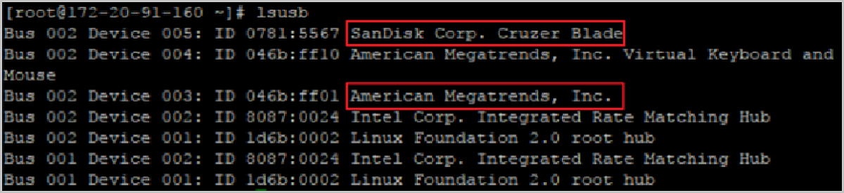 Note: You can run yum install usbutils or apt install usbutils to install the lsusb command. Make sure that the VM instance has access to the public network.