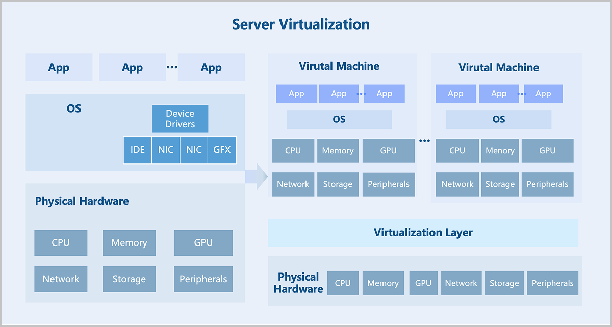 Compute virtualization abstracts physical server resources into logical resources through virtualization technology, enabling a single physical server to function as multiple isolated virtual machines. It pools hardware resources such as CPU, memory, disk, and I/O devices into a virtual resource pool for unified dynamic management. Consequently, it improves resource utilization, reduces system management costs, and increases IT agility to adapt to business changes.
