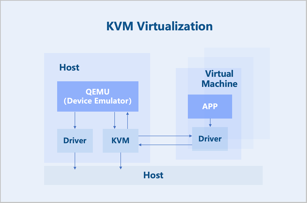ZStack ZSphere adopts a KVM-based hardware virtualization technology. As a Linux kernel module, KVM turns the Linux kernel into a hypervisor. KVM operates as a process within the Linux system and is scheduled by the standard Linux scheduler. As a result, KVM can leverage existing Linux kernel functionalities, such as memory management and CPU scheduling. However, KVM itself only provides CPU and memory virtualization. I/O device virtualization requires QEMU for full functionality. QEMU is a user-mode device emulator that provides virtual device models for virtual machines. It is responsible for creating, calling, and managing various virtual devices.
