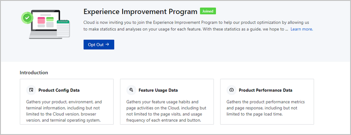 You can click Opt Out on the Experience Improvement Program page to opt out from the experience improvement program whenever you want.