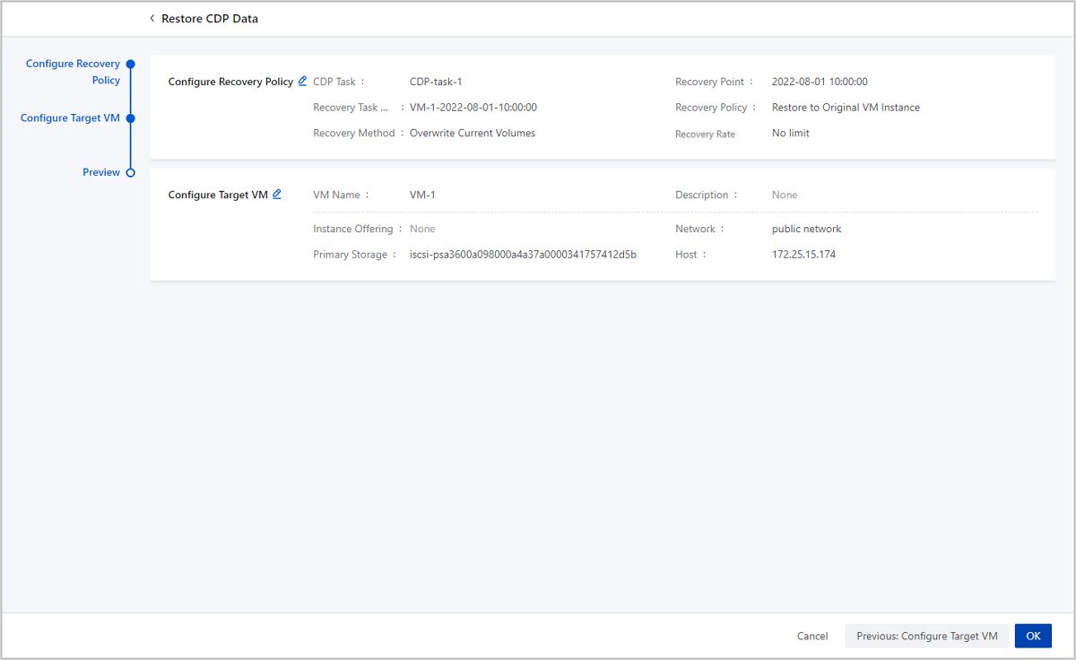 So far, we have introduced the CDP scenario practice of restoring data by creating a new VM instance.